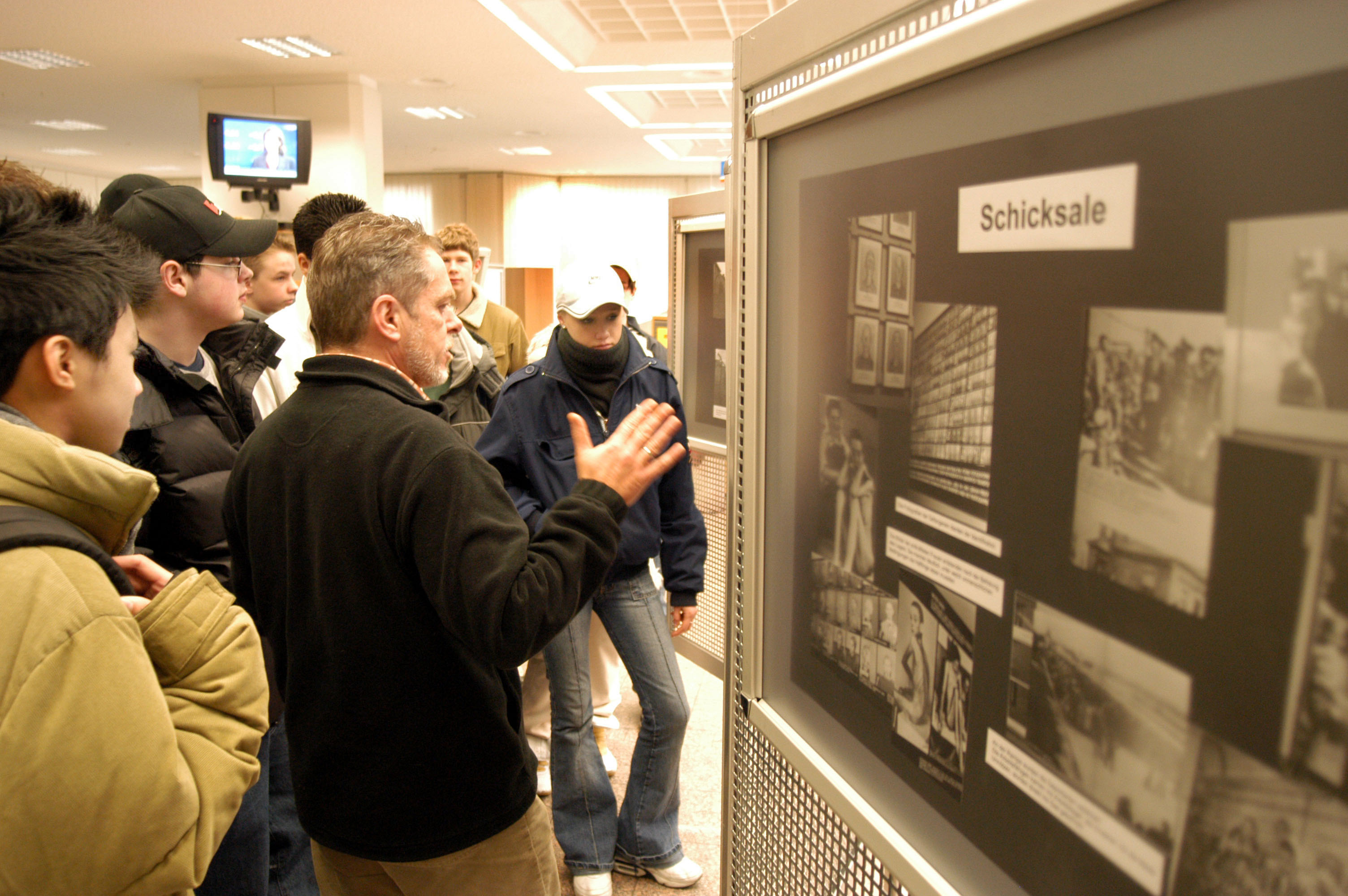 Während unserer Gedenkstättenfahrt 2002 wurde Kazimierz Smolen, ehemaliger Häftling und langjähriger Direktor der Gedenkstätte Auschwitz von einer unserer Jugendlichen befragt, ob er meine, dass wir jungen Deutsche noch eine Schuld trügen, an dem was damals geschah. Er antwortete: „Eine Schuld tragt ihr nicht, ihr habt aber die Verantwortung, dafür Sorge zu tragen, dass so etwas nie wieder geschieht.“ Diese Aussage war der Motor eine eigene Auschwitzausstellung zu entwerfen. Seit dem Jahre 2004 geben wir in regelmäßigen Abständen Schülerinnen und Schülern, sowie allen Interessierten die Möglichkeit unsere Ausstellung zu besuchen. Die Ausstellung wird durch persönliche Statements und Fotos von jugendlichen Auschwitzfahrern lebendig.