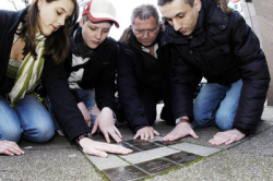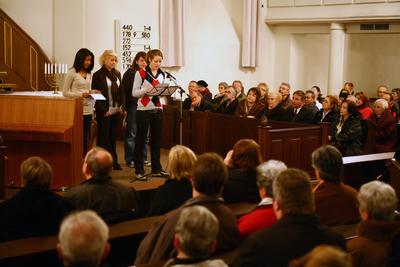 In MG-Odenkirchen lernten wir Leah Floh, die Vorsitzende der Jüdischen Gemeinde kennen. Durch ihre Vermittlung wurde es möglich, dass Jugendliche ihrer Gemeinde mit uns gemeinsam einen Stationsweg in Erinnerung an die zweite Deportation von jüdischen Mitbürgern Rheindahlens vorbereiteten.